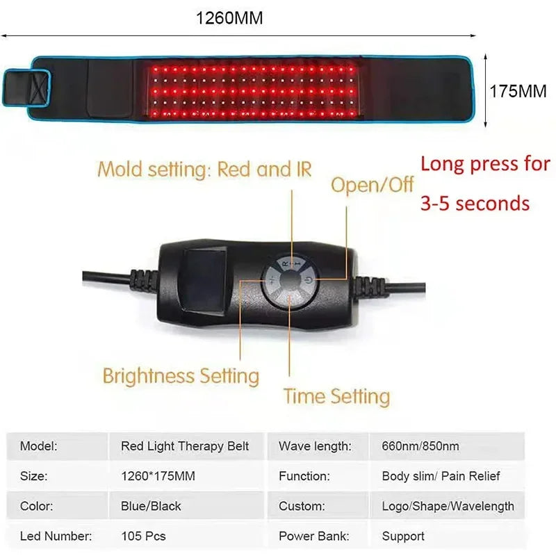 Föreställ dig att efter en lång arbetsdag eller ett tufft träningspass kunna luta dig tillbaka och låta ljuset och värmen arbeta. Bältet hjälper dig att slappna av, lindrar smärta och ger kroppen ny energi.